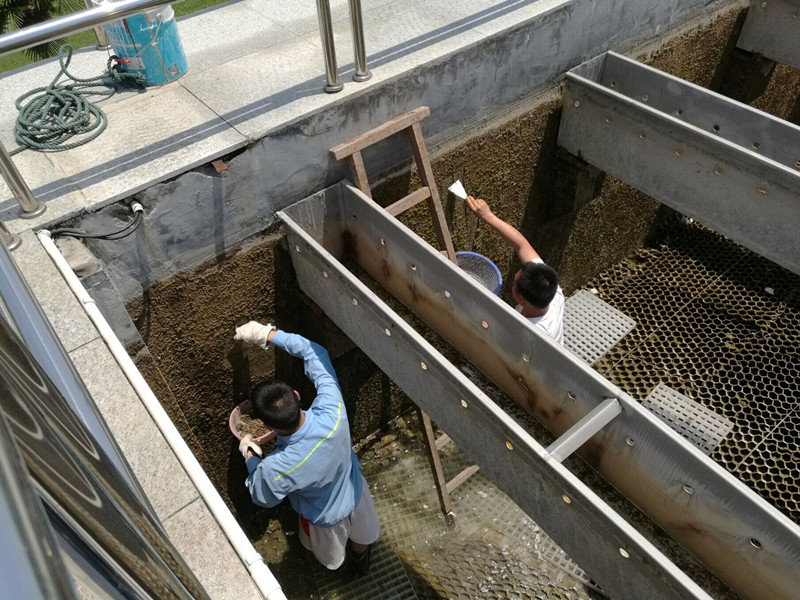 三水廠將絮凝沉淀池清洗列為本次保障工作重點(diǎn),提前制定周密細(xì)致的清洗方案,合理安排清洗時(shí)間,有序地推進(jìn)水位計(jì)校驗(yàn),刮泥機(jī)和其它水下設(shè)備維護(hù)和檢修,并對(duì)沉淀池、配水槽等進(jìn)行刮泥清理和消毒。