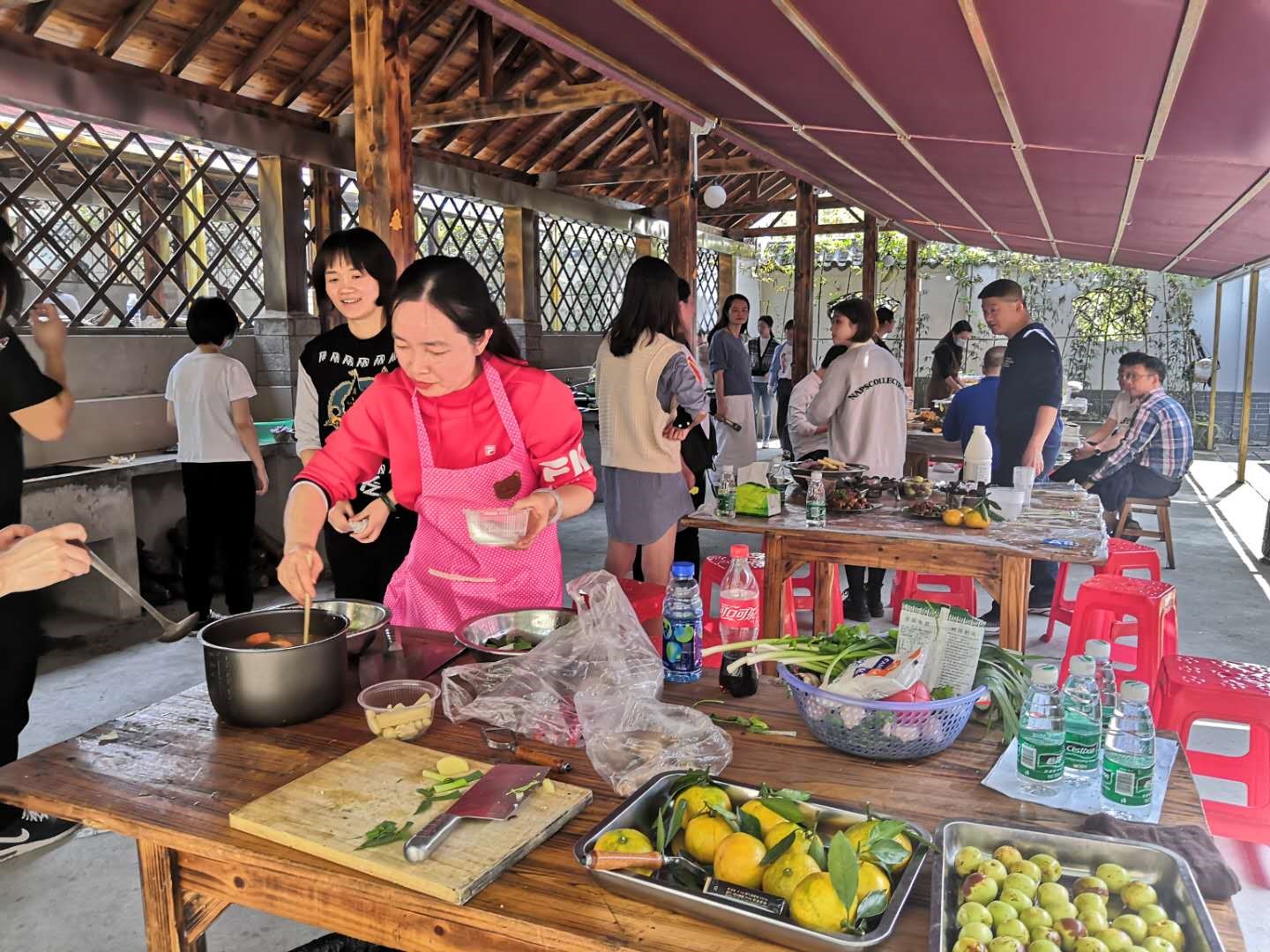 經過兩個小時的緊張忙碌,一道道色香味俱全的美味佳肴陸續(xù)展示在大家面前。雖然都是家常菜,但品嘗著用自己汗水換來的勞動成果,一個個喜笑顏開,大家像一家人一樣,圍坐在一起,互品互贊,其樂融融。