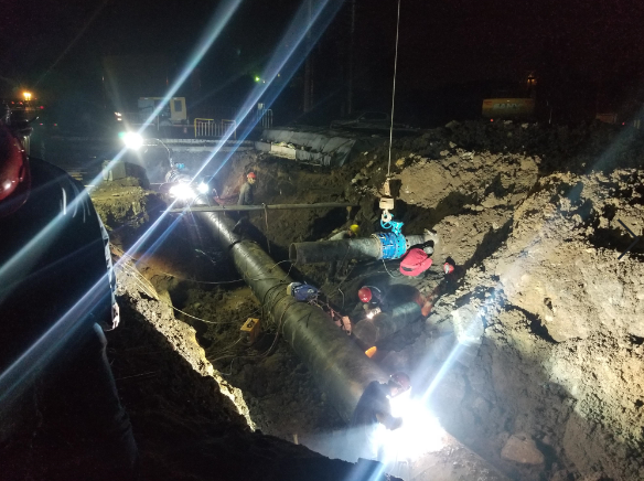 為最大限度降低停水對周邊企業(yè)及居民生活的影響,充分保障荊東大道管道遷改工程的后續(xù)建設(shè)工作,在碰頭過程中,安裝公司高度重視,項目負責(zé)人嚴格督戰(zhàn)現(xiàn)場,在保障安全文明施工的同時搶抓施工進度,施工人員連軸作業(yè)15個小時,最終于當日22:00完工恢復(fù)通水。
