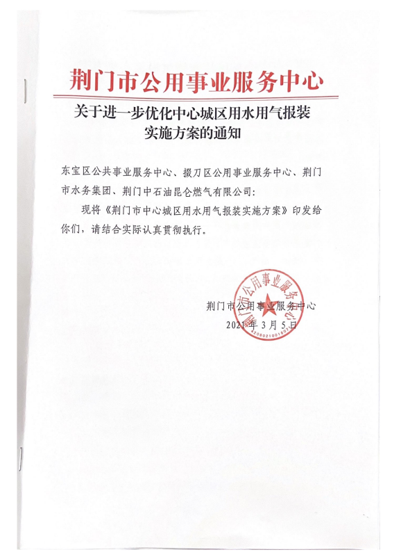關(guān)于進(jìn)一步優(yōu)化中心城區(qū)用水用氣報(bào)裝實(shí)施方案的通知