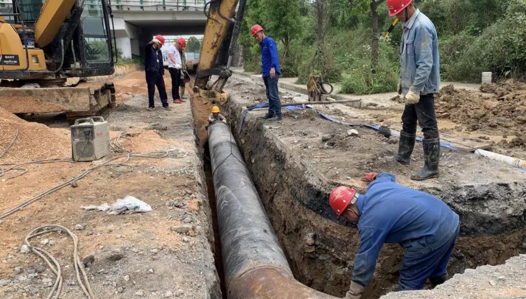 為了使黨史學(xué)習(xí)教育活起來(lái),市供水總公司聚焦主責(zé)主業(yè),今年初荊門(mén)市給排水安裝工程公司會(huì)同市規(guī)劃設(shè)計(jì)院、市建管中心在長(zhǎng)城汽車(chē)產(chǎn)業(yè)園現(xiàn)場(chǎng)進(jìn)行勘察,確定管位和施工方案。2月18日方案出臺(tái)后,工人立即正式進(jìn)場(chǎng)施工。因近幾月雨水天氣較多,項(xiàng)目部及時(shí)調(diào)整施工方案,增加施工人員,多次協(xié)調(diào)溝通武漢高速主管部門(mén)和當(dāng)陽(yáng)高速路政部門(mén),申報(bào)下穿高速公路段的管道施工方案,爭(zhēng)取縮短審批時(shí)間,確保工程順利推進(jìn)、按期完成。