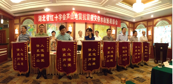 6月3日,湖北省紅十字會蘆山地震抗震救災供水救援表彰會在武漢召開。表彰會上,荊門市供水總公司黨委書記陳永根作典型發(fā)言,荊門市供水總公司被授“情系蘆山 人道博愛”錦旗,參與供水救援的隊員彭華、黃洋獲得嘉獎,榮獲廬山地震抗震救災先進個人稱號。