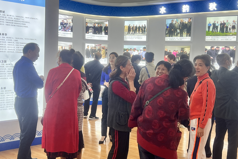 文化長廊的“飲水思源”區(qū)域記載了集團(tuán)從1969年建司以來的大事記,“水韻秋實(shí)”區(qū)域張貼了許多工作場景的老照片,“水到渠成”區(qū)域懸掛著水務(wù)人親筆書寫的字畫,還有配件展示區(qū)的一件件實(shí)物,都讓老同志們駐足攀談,夢回當(dāng)年。
