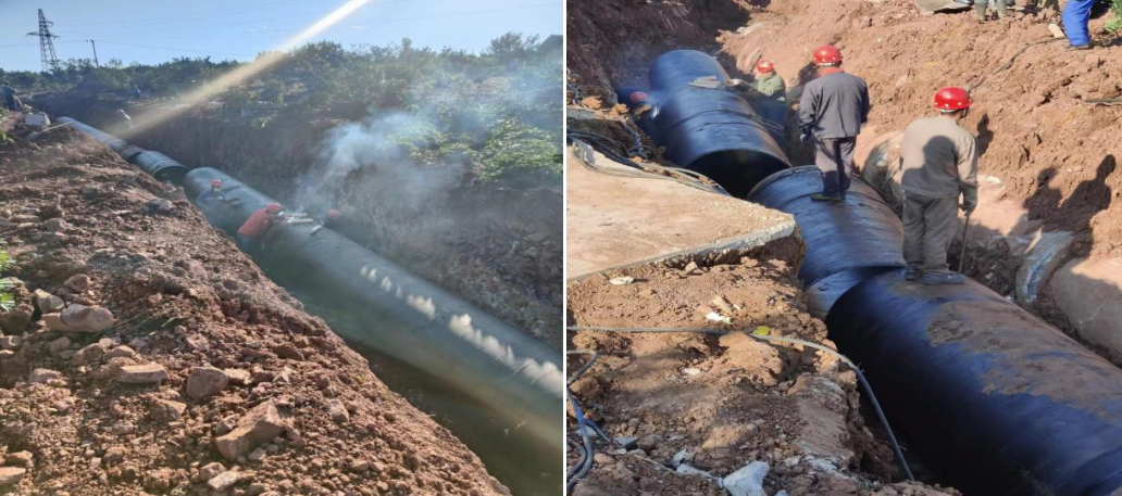 各部門(mén)精誠(chéng)合作,克服復(fù)雜地形、調(diào)度和運(yùn)輸困難等諸多不利因素,堅(jiān)守施工現(xiàn)場(chǎng),搶抓施工進(jìn)度,終于在12日晚6點(diǎn)完成70米DN1200鋼管焊接任務(wù),10月14日進(jìn)行管道試壓及沖洗消毒,恢復(fù)正常供水。