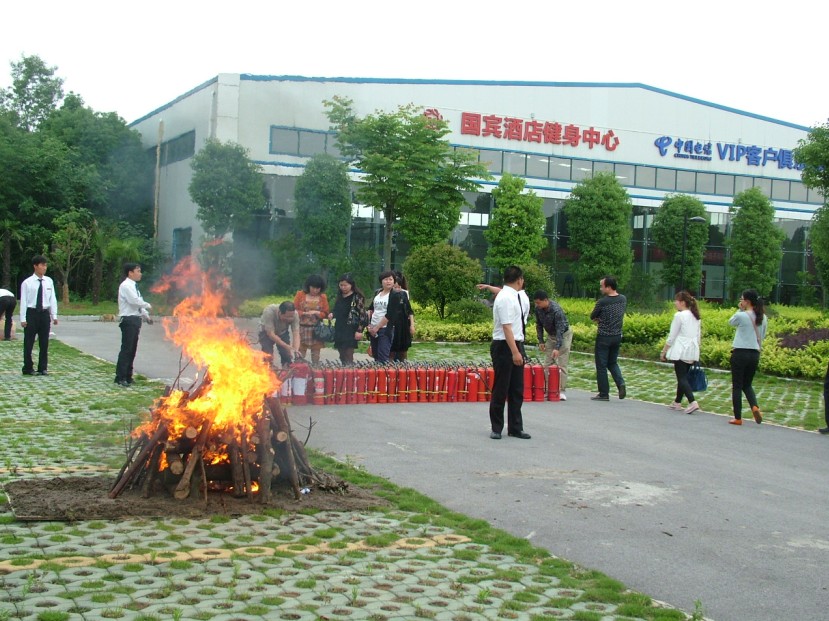 此次活動主要有三個方面內(nèi)容:培訓教育觀看碟片、應急疏散和現(xiàn)場滅火。認真觀看碟片后,演習正式開始, 隨著警報聲響起,參加演練人員迅速做出反應,人人嚴肅認真,服從指揮,不搶先、不擁擠,以最快的速度從兩側(cè)安全出口跑到安全集合地。為了掌握滅火器正確使用方法,參加人員都親自體驗了現(xiàn)場滅火的過程,面對熊熊燃燒的火堆,表現(xiàn)踴躍,按照滅火步驟和方法將火堆燃起的濃煙大火迅速撲滅。