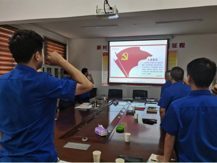 活動(dòng)現(xiàn)場,全體黨員一起重溫入黨誓詞,感悟入黨初心。