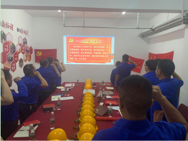 全體黨員面對黨旗莊嚴宣誓,重溫入黨誓詞,感悟入黨初心。