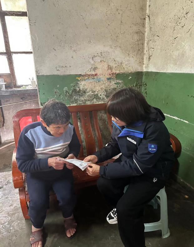 圖為工作人員為老人送票上門(mén),并溝通用水情況