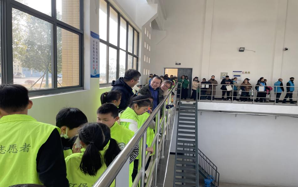 大家首先在四水廠中控室了解廠站基本情況和制水工藝流程,然后實(shí)地觀摩泵房、沉淀池等構(gòu)筑物。志愿者群體多數(shù)是首次進(jìn)入水廠,在參觀過程中熱情高漲,孩子們對生產(chǎn)設(shè)備、各類“池子”和水質(zhì)檢測室都充滿好奇,爭先恐后地提問,現(xiàn)場氣氛非?;钴S。