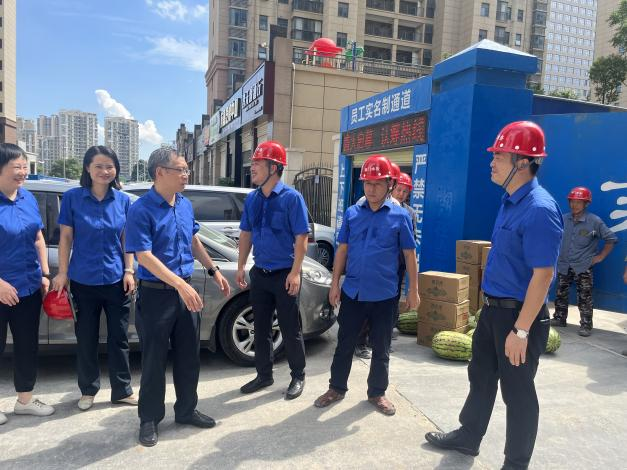 黨委書記、董事長陳永根帶隊分別在高鐵片區(qū)給水工程項目、五一路公共停車場項目和飛揚新天城二期管道直飲水項目現(xiàn)場仔細詢問施工進度和下階段施工計劃。他強調(diào)機關(guān)部門要加強資源科學(xué)配置,主動參與、積極協(xié)調(diào)生產(chǎn)經(jīng)營一線的具體問題,保障各二級單位在高峰保供期間能打贏、打的贏。陳永根與一線員工親切攀談,叮囑大家要科學(xué)安排作業(yè)時間,做到勞逸結(jié)合。