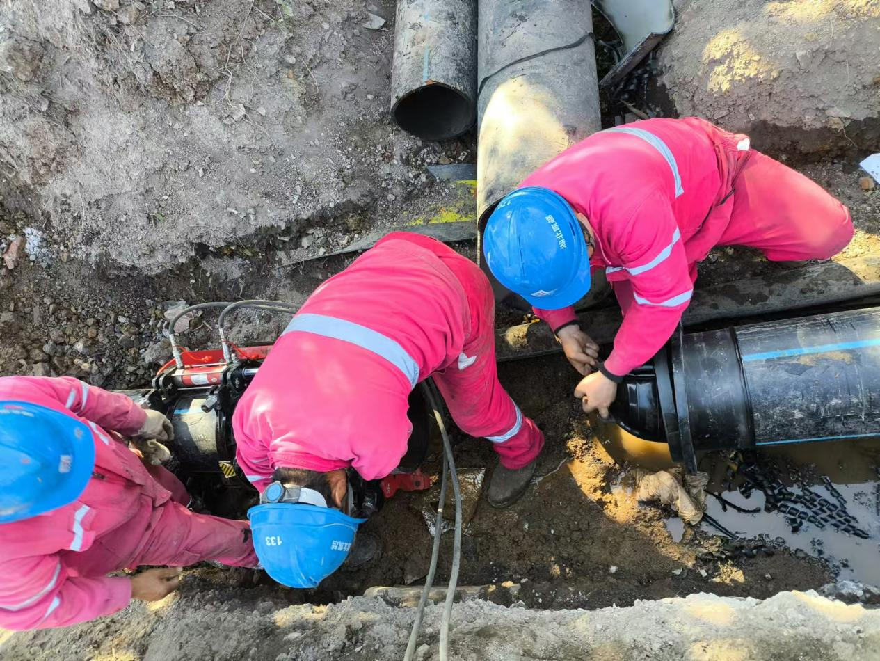 圖為管道碰頭施工現(xiàn)場(chǎng)