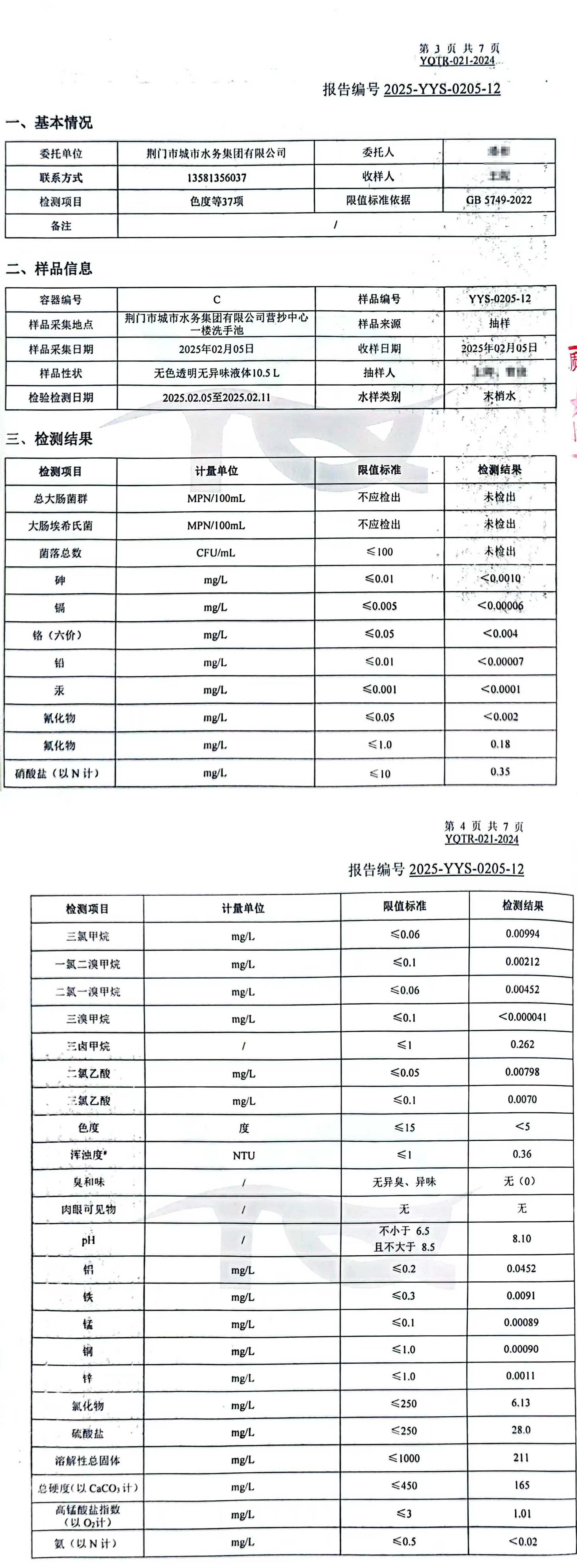 荊門(mén)水務(wù)集團(tuán)始終堅(jiān)持用戶(hù)至上服務(wù)宗旨,將水質(zhì)安全作為首要工作,通過(guò)三級(jí)水質(zhì)檢測(cè),保障從源頭到龍頭水質(zhì)達(dá)標(biāo)。自本月起,集團(tuán)將定期公布水質(zhì)檢測(cè)結(jié)果,歡迎廣大用戶(hù)監(jiān)督!
