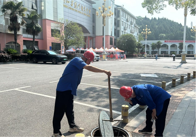 排水公司對荊門中心城區(qū)各考點學(xué)校周邊展開拉網(wǎng)式隱患排查工作,及時消除安全隱患,確保排水設(shè)施完好。為了應(yīng)對高考期間可能遇到的下雨積水問題,提前對考點周邊道路雨水管網(wǎng)進行全面清疏,并安排重點點位值班值守,全力保障高考考生出行安全。