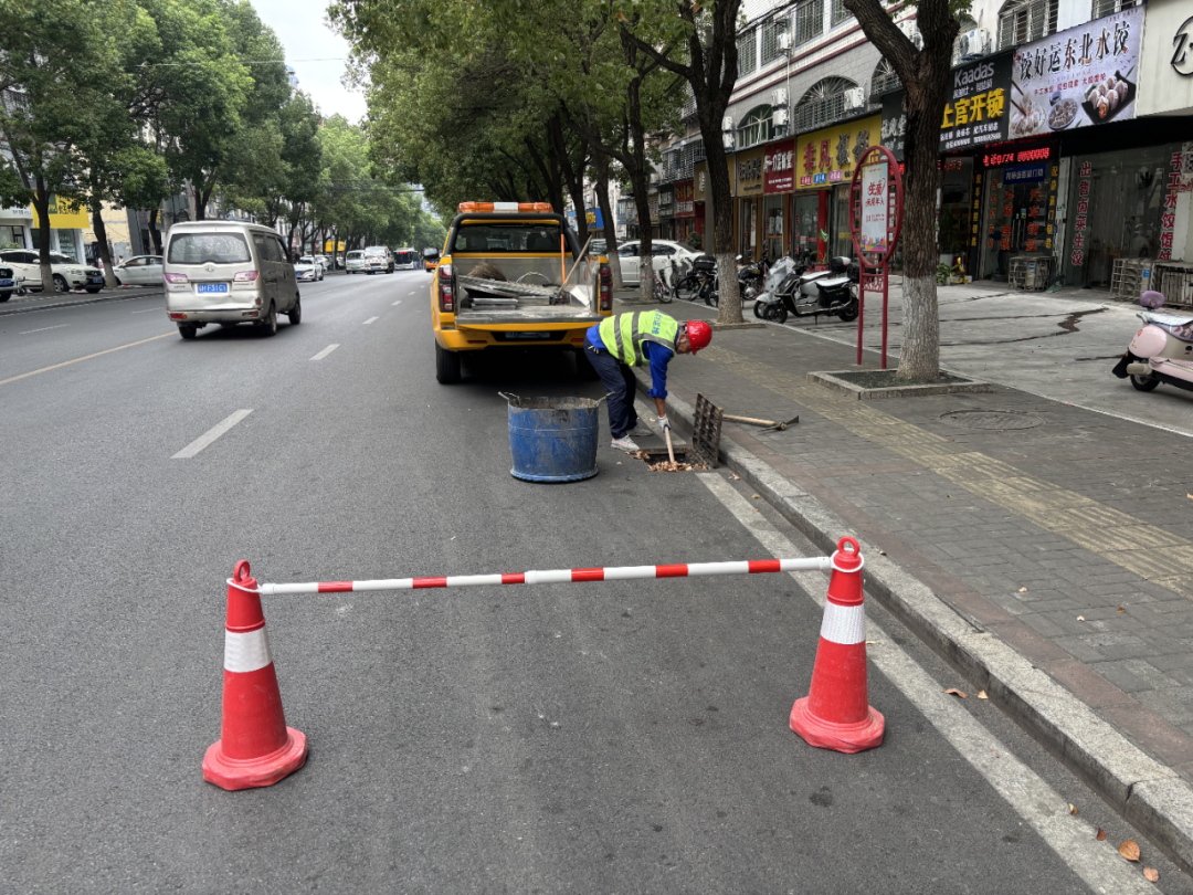 排水公司運維人員正在開啟雨水箅蓋進(jìn)行清淤
