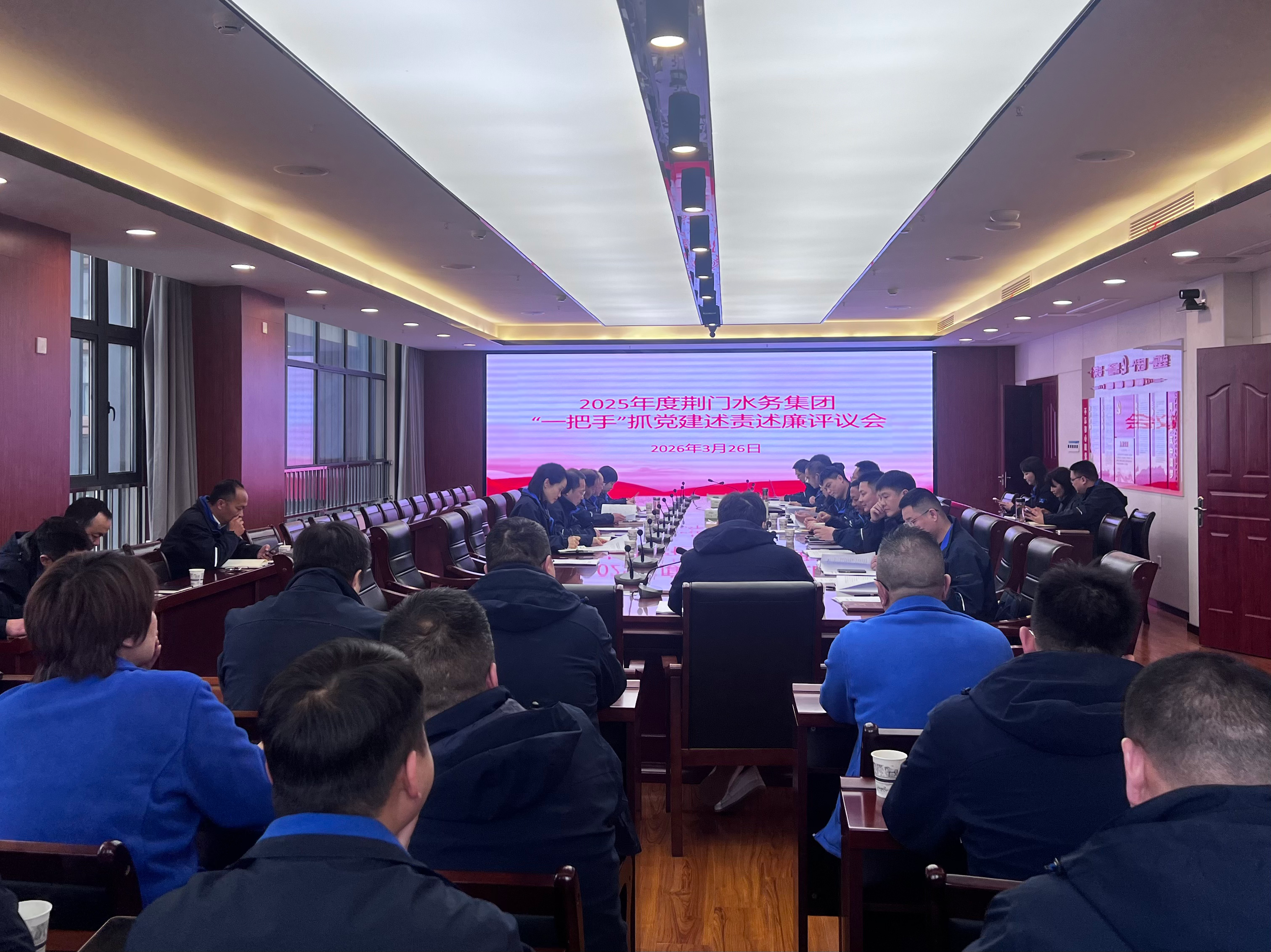 3月26日下午,荊門水務(wù)集團(tuán)召開(kāi)2025年度子公司“一把手”述責(zé)述廉評(píng)議會(huì)。集團(tuán)黨委書(shū)記、董事長(zhǎng)陳永根主持會(huì)議并講話,集團(tuán)領(lǐng)導(dǎo)班子成員、子公司領(lǐng)導(dǎo)班子成員、集團(tuán)機(jī)關(guān)及二級(jí)單位中層干部參會(huì)。