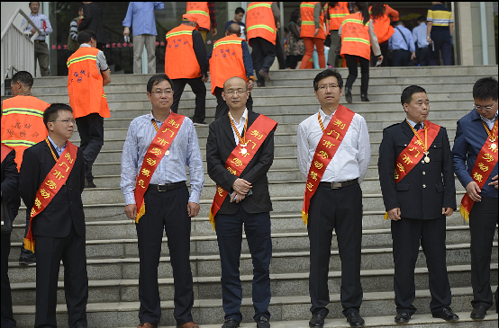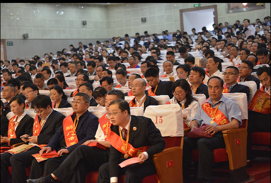 荊門市勞動(dòng)模范、供水總公司黨委書記、總經(jīng)理陳永根(二排右三)在會(huì)議現(xiàn)場