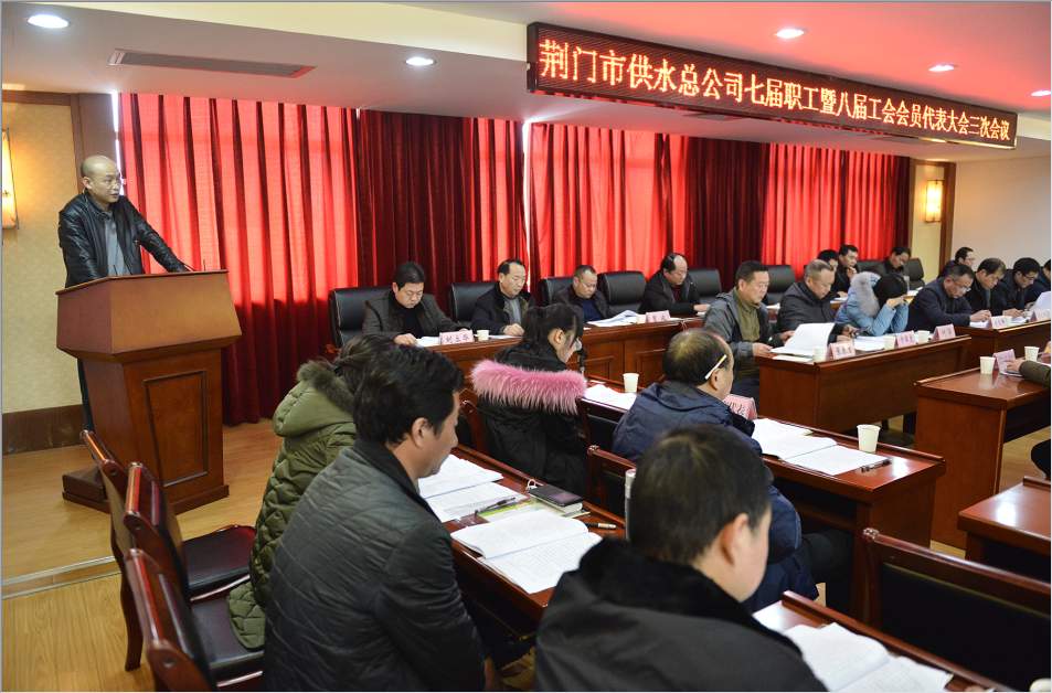 會議在莊嚴(yán)的國歌聲中開幕。公司黨委書記、總經(jīng)理陳永根作了《2016年度公司工作報告》,認(rèn)真總結(jié)了2016年度取得的各項成績;供水設(shè)施建設(shè)投資體制理順、5條道路供水管道改遷提前完成、國賓酒店環(huán)評獲批;管黨治黨高度前所未有、項目建設(shè)力度規(guī)模空前、公司主輔業(yè)產(chǎn)值連續(xù)五年雙過億,總額首次突破3億元等。客觀分析了當(dāng)前企業(yè)發(fā)展存在的機(jī)會和挑戰(zhàn),并對2017年度的工作作出了展望。黨委委員、工會主席馬兆芳,黨委委員、總會計師劉高軼分別作了《2016年度工會委員會工作報告》、《荊門市供水總公司2016年度財務(wù)預(yù)算執(zhí)行及2017年財務(wù)預(yù)算草案編制報告》、《荊門市供水總公司2016年度工會經(jīng)費(fèi)執(zhí)行及2017年工會經(jīng)費(fèi)預(yù)算情況報告》。職工代表提案審查小組組長卞軍虎對七屆職工暨八屆工會會員代表大會二次會議職工代表提案辦理情況作了報告,七屆職工暨八屆工會會員代表大會二次會議共收到34份職工提案,實(shí)際需要回復(fù)和辦理的提案為32份,已辦結(jié)的有27份,正在落實(shí)的5份,報告中對正在落實(shí)的提案進(jìn)行了說明。工會副主席張春生對本次會議征集職工代表提案作了報告,本次會議共收到19份提案,其中涉及經(jīng)營管理的5份,技術(shù)改革的1份,教育培訓(xùn)的1份,薪資福利待遇的12份。會議期間,與會代表給予六個報告充分肯定,圍繞各項工作報告,進(jìn)行了熱烈討論,提出了許多寶貴的建議和意見。