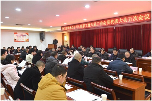 1月2日下午,市供水總公司七屆職工暨八屆工會會員代表大會五次會議勝利召開。大會聽取并審議了2017年度公司工作報告、2017年度工會委員會工作報告、2017年度財務預算執(zhí)行和2018年財務預算草案編制報告、2017年度工會經費執(zhí)行和2018年工會經費預算情況報告、七屆職工暨八屆工會會員代表大會三次會議職工代表提案辦理情況報告及本次會議征集職工代表提案報告。公司黨委成員和職工代表、工會會員代表、列席代表共100余人參加會議。