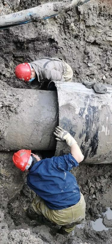 為盡快恢復(fù)供水,參與搶修人員直到下午2點(diǎn)才顧得上在現(xiàn)場匆忙吃一碗方便面午餐,下午4:40搶修工作順利完成,待封堵的水泥養(yǎng)護(hù)強(qiáng)度合格后于當(dāng)晚8點(diǎn)該管線完全恢復(fù)正常供水。