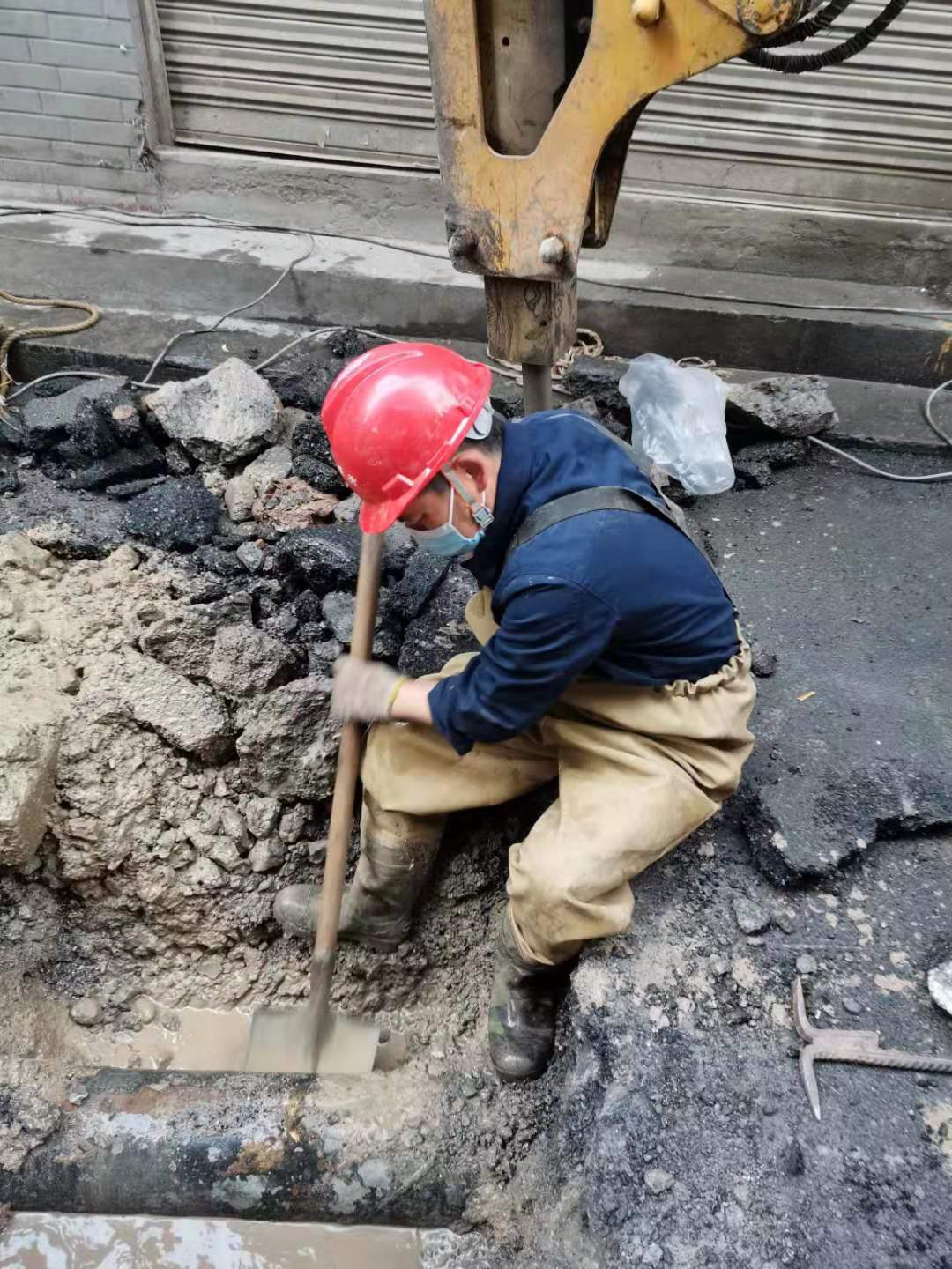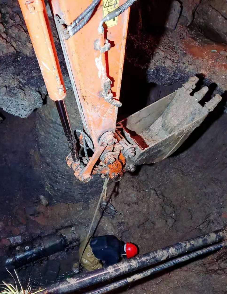 1月28日8時(shí),白云大道農(nóng)行家屬區(qū)門口DN100管道爆裂,因在人行道上,地下管線交錯(cuò)復(fù)雜,不能用工程機(jī)械開挖,黃磊帶領(lǐng)班組人員硬是挨著管線用手刨釬撬,人工開鑿出搶修坑,在連續(xù)奮戰(zhàn)3個(gè)小時(shí)后,趕在用水高峰期搶修完畢給用戶通水。這邊剛搶修完,那邊又接到值班電話通知建設(shè)街DN200管道漏水,如不及時(shí)搶修,在漏水失壓的情況下會造成大面積用戶無水,黃磊沒有一絲懈怠,立即組織人員、機(jī)械到現(xiàn)場,簡單吃了一桶泡面又投入到搶修工作中,搶修現(xiàn)場居民感動(dòng)不已,紛紛送來手套、口罩、方便面等慰問品。下午3時(shí),多輝農(nóng)產(chǎn)品市場因封路時(shí)挖機(jī)將DN50管道拉斷,考慮到已經(jīng)連續(xù)奮戰(zhàn)多時(shí),公司領(lǐng)導(dǎo)準(zhǔn)備安排其它維修班組去搶修,其他隊(duì)伍集結(jié)需要時(shí)間會耽誤疫情控制,而且位處垃圾堆有感染風(fēng)險(xiǎn),黃磊主動(dòng)請纓出戰(zhàn)。晚上22時(shí),黃磊又接到出警電話,因楊家橋DN300管道爆裂,路上汪洋一片。他其實(shí)搶修完才到家一會,但黃磊沒有遲疑,立即聯(lián)系機(jī)械進(jìn)場,在班組微信群通知集結(jié)路線,沿路接人,在他的帶領(lǐng)下,從維修材料準(zhǔn)備到人員機(jī)械到位用了不到40分鐘,因開挖后形成的基坑深度達(dá)近5米,為保障人工深基坑作業(yè)安全,黃磊一刻也沒離開基坑,直到凌晨5時(shí)搶修完畢。