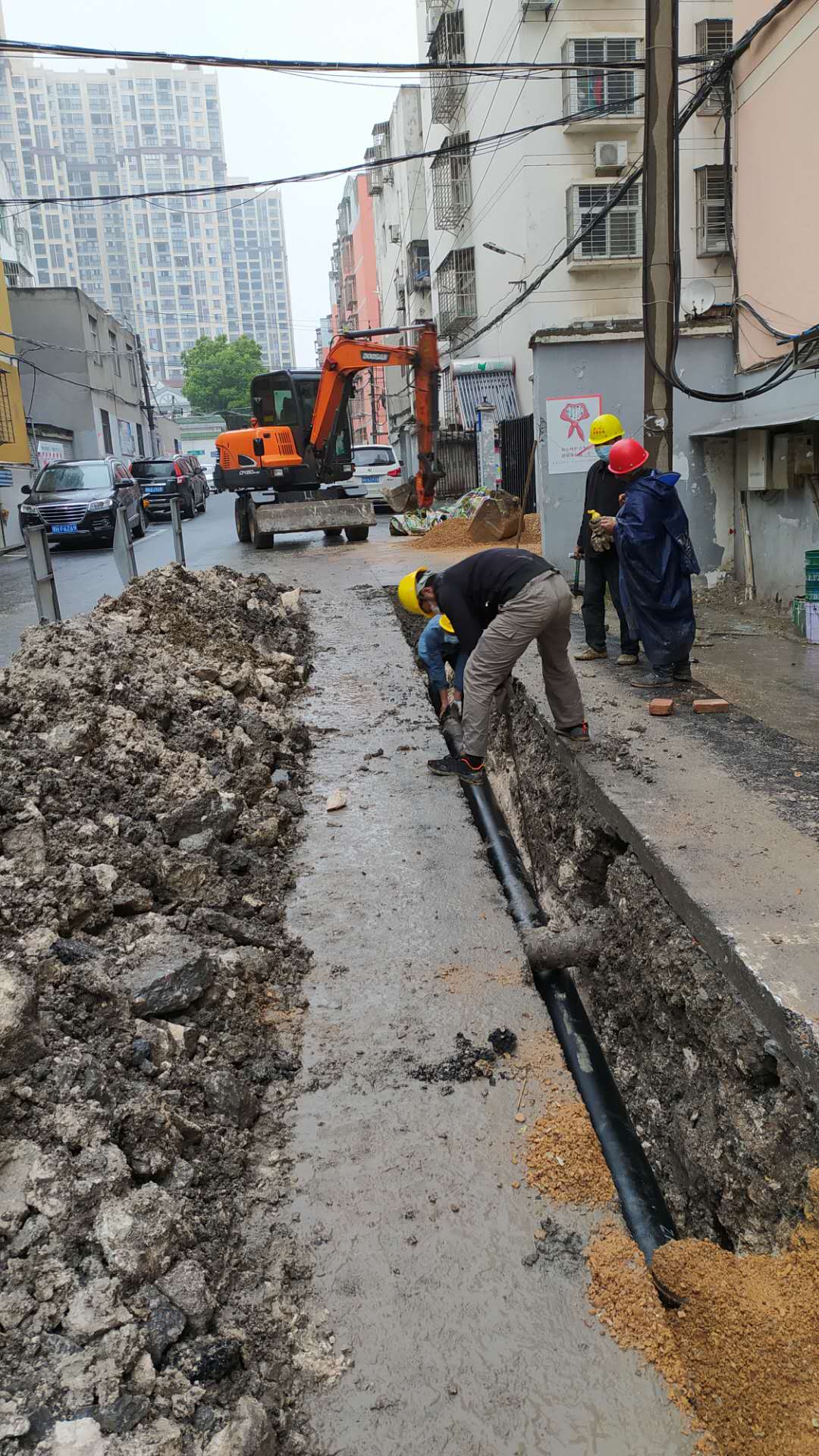 去年底,市供水總公司優(yōu)先為“退城進(jìn)園”的荊門市金豐新材料有限公司安裝了用水接入水表。今年4月下旬,公司通過供水服務(wù)回訪,第一時間得知企業(yè)廠區(qū)土建工程基本完工,而內(nèi)部供水管網(wǎng)只鋪設(shè)到廠區(qū)大門??紤]到企業(yè)具有社會福利性質(zhì)及疫情給新廠區(qū)建設(shè)造成的影響,市供水總公司特事特辦,安排工程技術(shù)人員前往現(xiàn)場勘查、制定施工方案,并決定為新廠區(qū)免費(fèi)安裝100余米DN160主管道。10多名精兵強(qiáng)將加班加點(diǎn)將供水管材、施工設(shè)備提前運(yùn)達(dá)施工現(xiàn)場,熔管、焊接、鋪管……安裝工程緊鑼密鼓開展,5月1日,順利通水,為項(xiàng)目早日投產(chǎn)打下基礎(chǔ)。